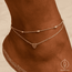 Das filigrane Doppel-Fußkettchen kombiniert zwei goldene Ketten: Eine mit einem zarten Herzanhänger, die für emotionale Tiefe steht, und eine zweite mit organisch geformten Ovalen, die die Schönheit der Natur widerspiegeln.